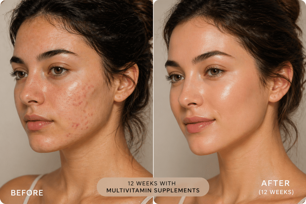 Acne purge: Counterintuitively, when you first start taking multivitamin supplements for improving skin glow naturally, your skin might break out slightly as it begins detoxifying and cell turnover accelerates. This typically resolves within 2-3 weeks.